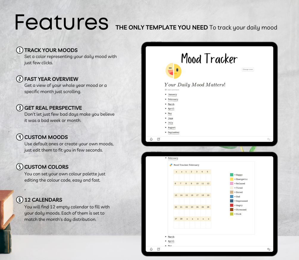 Mood Tracker$0+$0+https://schema.org/InStockusdYourDailyNotionYourDailyNotion6 ratingsName a fair price:$Add to cartAdd to wishlist New wishlistShare on XShare on Facebook Copy linkCopy product URLRatings5(6 ratings)655 stars100%4 stars0%3 stars0%2 stars0%1 star0%